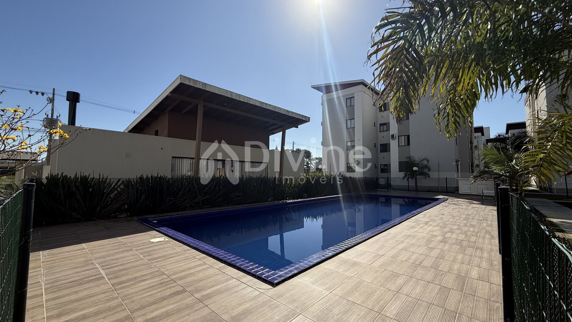 O condomínio oferece ainda área de lazer com piscina, um espaço perfeito para relaxar e aproveitar momentos de descanso sem sair de casa.